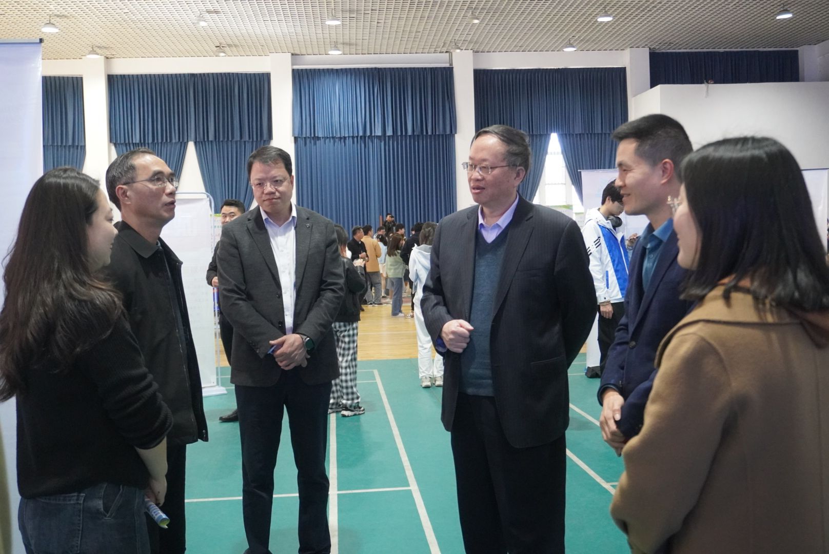 展区与院领导交流就业工作