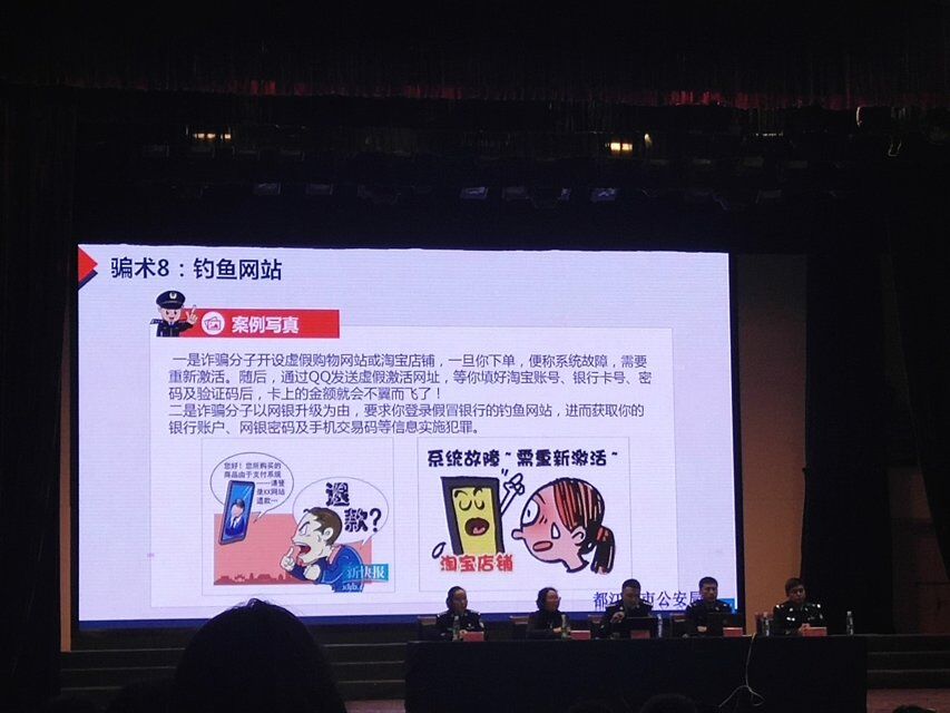 继新中国成立以来,我国法律体系不断地完善,为维护人民的权益做好了基奠,但由于各阶层人民法律意识的淡薄,常有权损不维的情况发生。本次讲座特邀都江堰市公安局刑警大队教导员王楠、刑警大队消防中心C堰市公安局政委马福平来给同学们讲解防范网络电信诈骗等方面知识。内容主要涉及对网络及电信诈骗的认知、识别和一系列防骗措施。讲解配有多段贴切的小视频,增加了此次活动的趣味性。