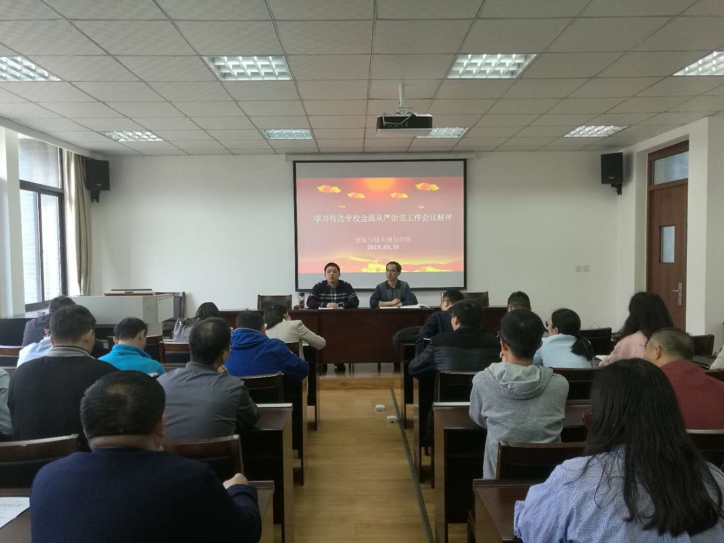4月16日下午,学院在2C405召开全体党员干部及教职工大会,学习传达学校全面从严治党工作会议精神。