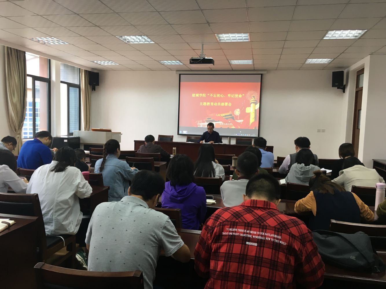 召开“不忘初心,牢记使命”主题教育部署动员会。学院全体领导班子,全体教职工党员参加会议。会议由党委书记申琼主持。