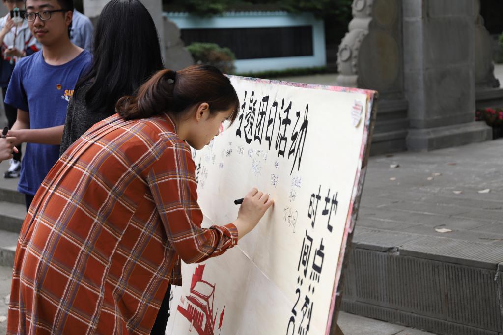 学院团委带领团员代表走进都江堰烈士陵园,开展 “青春心向党.建功新时代”纪念五四运动100周年主题团日活动。青年团员开展了团旗下的演讲、重温入团誓词等纪念活动。优秀学生标兵、国家奖学金获得者、保送重庆大学硕博连读的陈安钰同学在演讲中表示:“作为当代青年,应以勇于承担,不懈奋斗,励精图治、负重前行的精神去阐释青年力量,在新时代继承和弘扬五四精神,争做担当民族复兴大任的时代新人。”