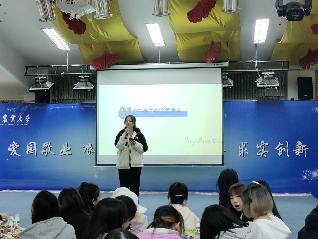见面会开始,党委办公室副主任兼团委副书记周宁老师致辞,希望团学成员努力学习、学会思考、注重实践、服务同学。随后,学生会主席及团委副书记上台发言,给予干事们鼓励与建议,并强调团委学生会成员必须团结一心、服务同学、磨砺自身。
