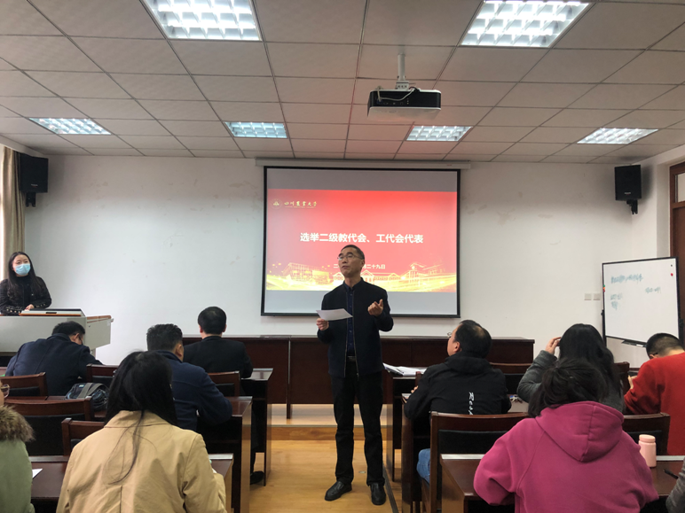 3月29日,学院在2C405召开了全体教职工大会,选举产生了学院第七次教职工代表大会、第十一次工会会员代表大会代表。会议由学院部门工会副主席杨雪主持,学院领导及全体教职工参加了会议。