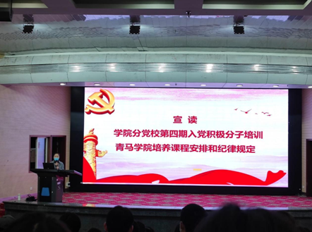 分党校第四期入党积极分子培训暨第一期青马学院培养开班仪式”。参与本次开班仪式的青马学院学员和入党积极分子共计235人。开班仪式由学院党委办公室主任、团委书记杨雪主持。