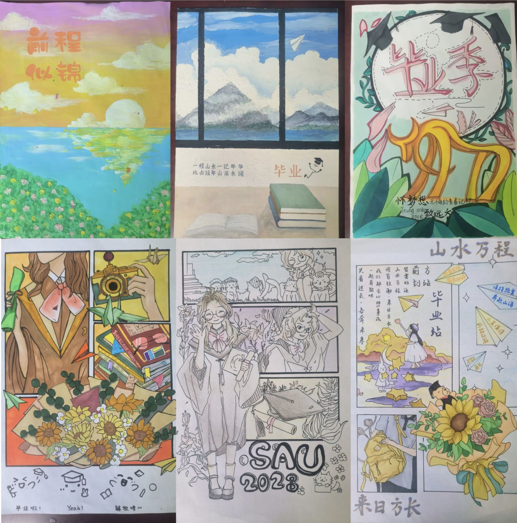 学生会文娱部开展 “手作达意,献礼祝福”手绘作品征集活动,2021、2022级学弟学妹们怀揣着最诚挚的祝福,执笔绘丹书,手作献祝福,鼓励毕业生们不畏前路,勇敢前行。