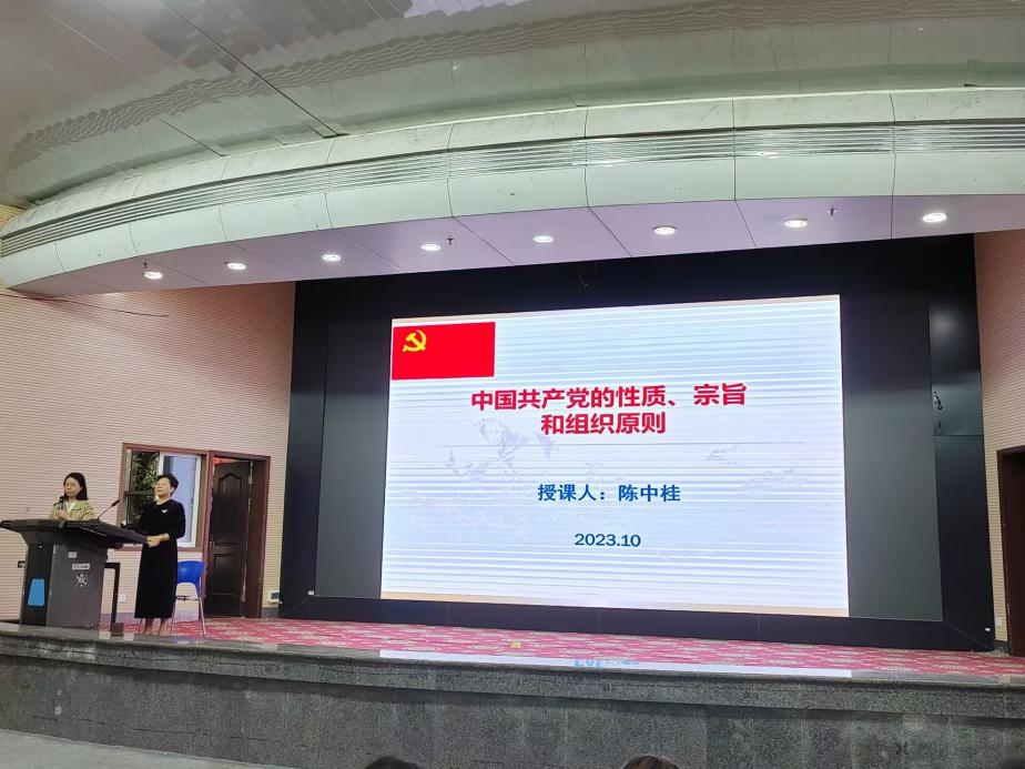 第五期入党积极分子讲授了题为《中国共产党的性质、宗旨和组织原则》的专题党课。党课由党委办主任罗艺霖主持。