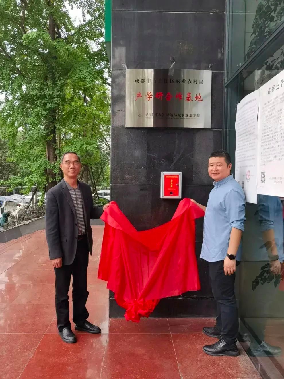 11月8日,色情论坛 到成都市青白江区农业农村局(以下简称:区农业农村局)洽谈合作事宜并签订了《框架性合作协议》,学院党委书记申琼与区农业农村局党组书记、局长刘正共同为“产学研合作基地”揭牌,学院和区农业农村局相关人员参加了上述活动。