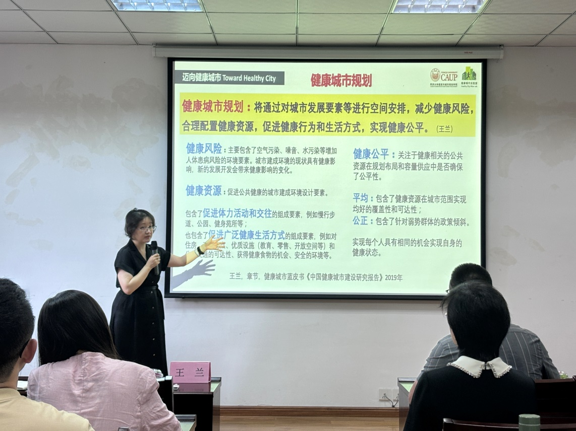 作了题为“健康城市研究与规划实践”的学术报告。报告由学院院长曹云忠教授、建筑学专业负责人万将军副教授联合主持,学院相关专业老师、研究生和部分本科生参加讲座。