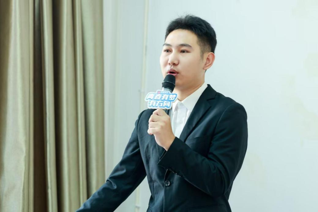 23届学院毕业生吕学聪上台发言。他结合自己的亲身经历,分享了从迷茫到清晰目标、从零到一的成长历程。他以真诚的话语和宝贵的经验,向同学们传授了平台选择、面试技巧以及职业发展路径等方面的实用建议,为他们的未来规划提供了有力指导。