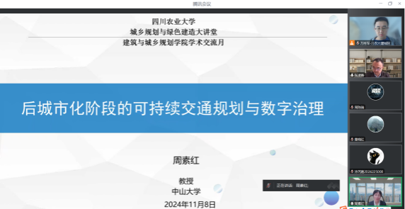 成功举办了“城乡规划与绿色建造大讲堂”线上学术活动。本次活动特别邀请了中山大学周素红教授作题为“后城市化阶段的可持续交通规划与数字治理”的专题报告,讲座由学院副院长张凌青主持,学院全体研究生参加。