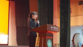 第十一届团委学生兼职副书记陶俊冰做述职报告。陶俊冰从抓好“组织建设育人”、“文化思政育人”、“实践志愿育人”、打造“校内校外平台”四个方面分别阐述了对未来团学组织工作的总结和展望。