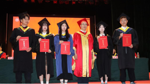 学位评定委员会决议》。学院党委书记申琼宣读研究生授位名单,学校副校长丁林教授及学院院长曹云忠教授为毕业研究生拨穗授位。学院副院长张凌青宣读本科生授位名单,主席台就座领导为本科毕业生授位。