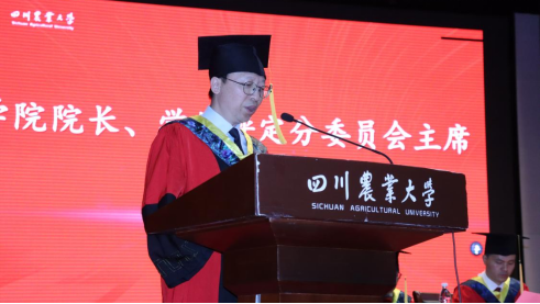 院长曹云忠代表学院致辞,面对即将步入人生新阶段的毕业生们,他强调,川农大精神将始终作为毕业生的灯塔,指引新一代川农建设者创造伟业。