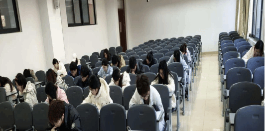 为还原真实考试场景,保障模拟效果,活动前期工作人员进行了充分准备:精心筛选贴合真题难度的模拟试卷与标准听力音频,规范印制答题卡,制作精准计时的考试倒计时视频;严格参照全国大学英语四六级考试的时间安排、监考规范等要求划分考场、配备监考人员,全力为学生打造沉浸式备考体验,助力大家提前熟悉考试节奏、适应考场氛围。