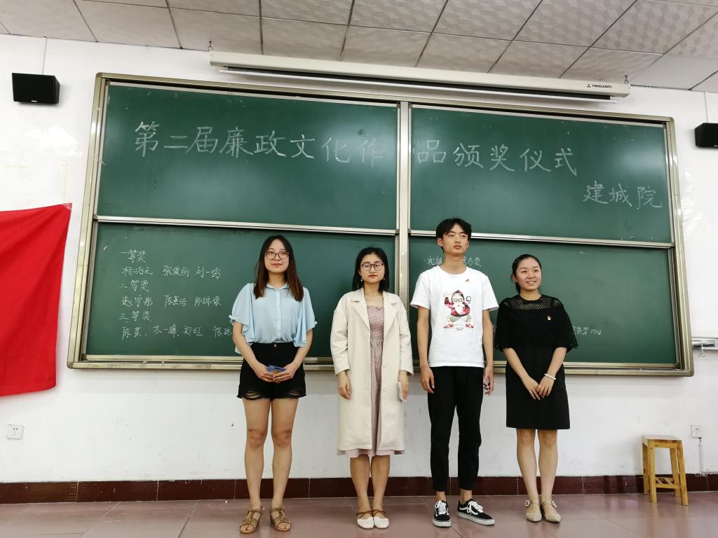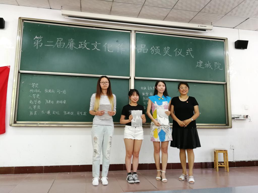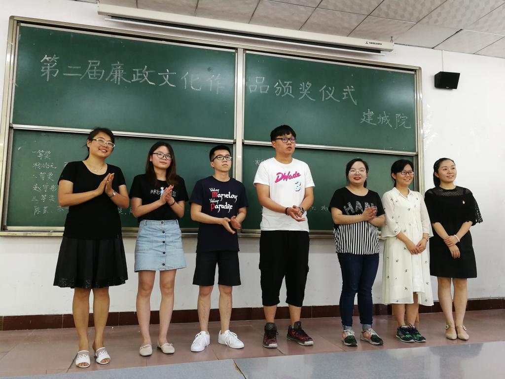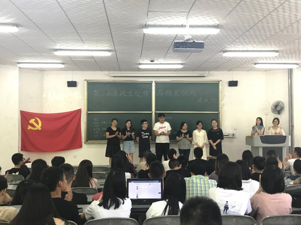 积极筹备,指导学生踊跃进行廉政文化学习与艺术创作。历时一月,具有浓郁建城特色的作品新鲜出炉。2018年6月5日下午,建城院第二届廉政文化作品颁奖座谈在1117召开。院党委副书记庄萍萍、党委办公室全体老师、党建办公室、所有学生党员、廉政文化作品获奖学生到场参加。