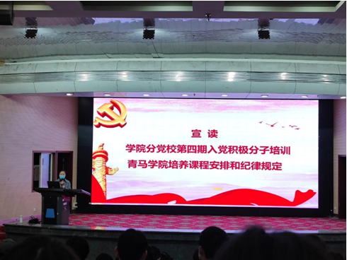 2022年3月22日,学院第四期入党积极分子培训开班仪式在图书馆报告厅举行,随后在这里进行了为期两周的入党积极分子培训学习教育活动。参与本次培训的入党积极分子共有67人,培训包括五个专题培训、小组讨论,主题实践活动和结业考试等流程。