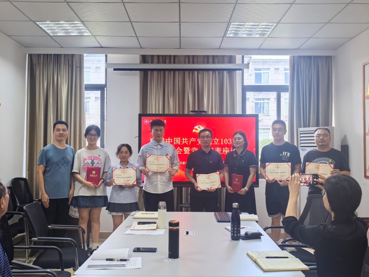 申琼代表学院党委,向全体党员同志致以节日的问候!向受到表彰的先进集体和优秀个人表示祝贺!他传达了学校党委书记庄天慧在庆祝中国共产党成立103周年座谈会上的讲话精神,面对新形势新任务,要以“时不我待”的紧迫感,“舍我其谁”的责任感,“功成有我”的使命感,按照“四个聚焦”,即聚焦思想引领、政治生态、基层基础、发展质量,不断提升党建引领水平,为建设一流农大、促进学院高质量发展作贡献。