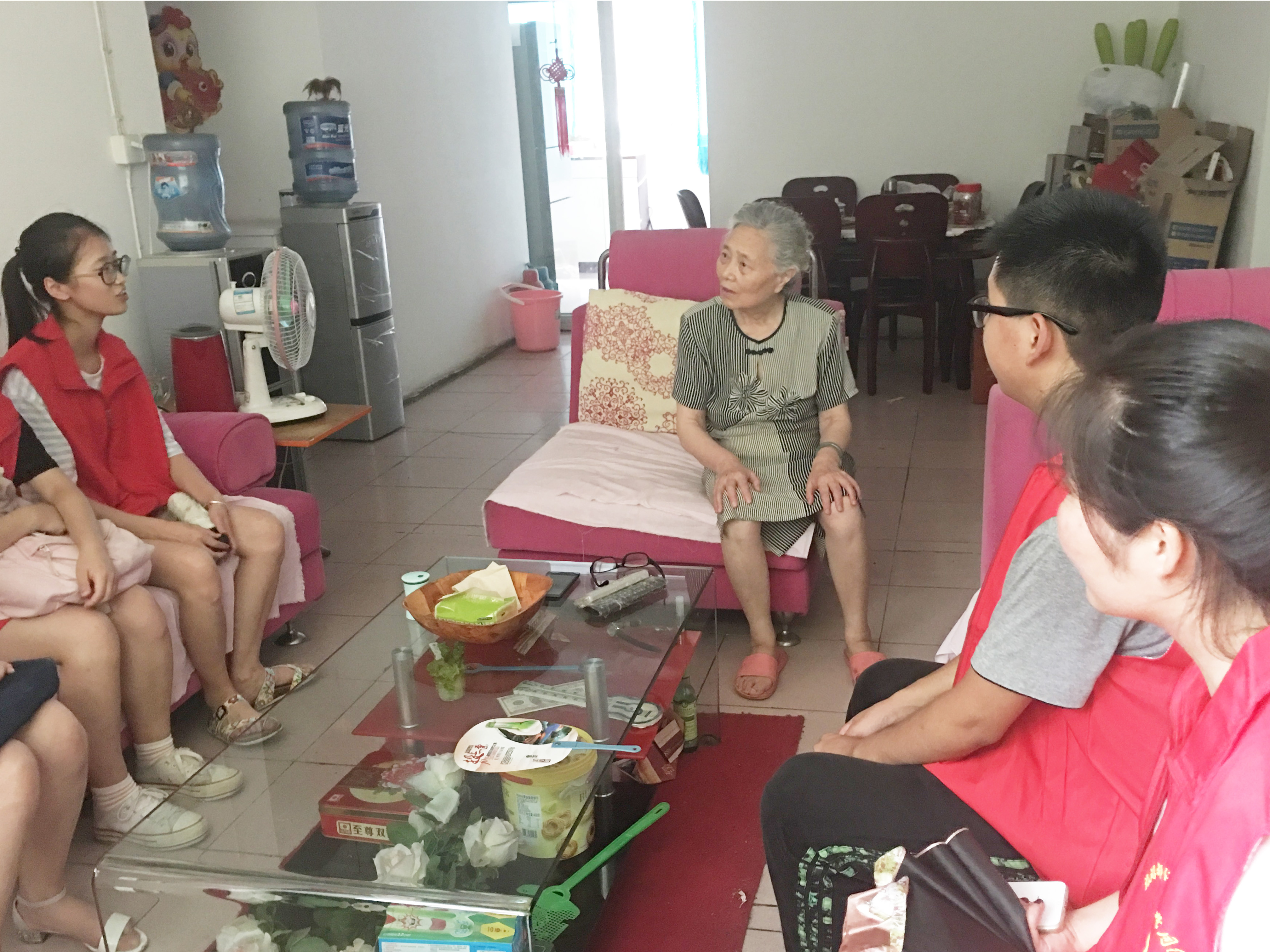陈奶奶年龄虽然大了,但拥有一颗不老的心。优雅知性的生活,不焦不燥,偶尔看看书,也会像年轻人一样玩玩智能手机。团队成员跟她谈了许久,从生活琐事到回顾都江堰几十年来的发展历程,她都历历在目。她说现在国家好了,发展快了,日子越过越好了,她现在很幸福。同时还激励像队员这些年轻人,要奋发图强,努力学习,为国家、为社会做出贡献。