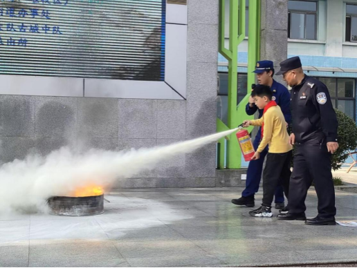 志愿者和班主任老师的引导下,全体师生紧急疏散,他们用毛巾、手帕等物品捂住口鼻,压低身体有序迅速撤离教学楼。演练结束后,都江堰市消防队的消防员们通过“演、练”结合的方式对灭火器、消防车的使用操作分别进行教学,详细讲解了如何预防火灾和火灾中的正确自救方式等知识。此外,消防员还提示大家,燃气使用后不关闭、人走不断电等日常生活中常见的“小事”均可能是易引发火灾的“大事”,消防安全无“小事”,要时时处处多留心。