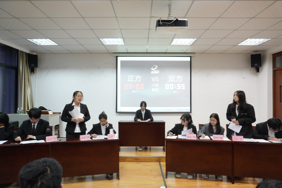 图为冠军争夺赛“三辩盘问”环节发言场景