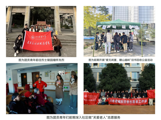 团委直属部门流动团支部及建筑2023级团支部前期已组织同学们前往烈士陵园参观,缅怀先烈,观仰先辈遗迹,传承红色精神,还深入社区开展“关爱老人”志愿服务活动,向老人献爱心,为社区谋福祉,在志愿服务中发挥自身才干;院团委组织建设与发展指导中心开展了“爱无闲置,翻书越岭”旧书回收公益活动,为山区儿童收集书籍,将川农人的温情跨越山海传递到山区儿童心中。团支部以多种实践活动、多样化行动、沉浸式体验积极弘扬实干·精神,推动团员青年在奉献与服务中锻炼思想,锻炼才干,助力团员和青年主题教育扎实开展。