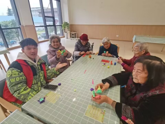为了更好地开展志愿服务,同学们提前与社区联系,展开调研,深入了解社区老人的现状和生活方式,最终决定通过一起进行手工创作,增添老年人生活的乐趣,进一步鼓励老人们充分发挥想象力和动手能力。活动中,志愿者们将各种颜色的黏土、剪刀、胶水等DIY手工材料发放给老人们并详细讲解了DIY手工的制作方法。在制作手工艺品的过程中,老人向同学们分享回忆往事,畅谈曾经的欢乐与艰辛。这不仅是一次充满爱心和温暖的活动,更是一次敬老、爱老、尊老、助老的实践。