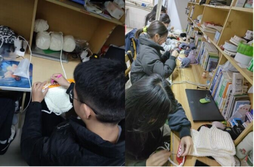 在了解到由我校共青团组织牵头的“围爱同行,情暖寒冬”活动,工程(本)202302的同学们纷纷表示希望以手工制作围巾的方式为我校研支团所在地的留守儿童送去温暖。于是全班同学利用课后时间给需要帮助的儿童编织围巾。当冬日暖阳映照在窗帘,寝室里围坐着一群男生,他们一边看着学习视频,一边笨拙地穿着手里的毛线;当夕阳余晖抚过窗帘,寝室里一群围坐着的女生,她们一边聊着天,一边商量着手里毛线的颜色。一团毛线,传递了一份心灵的关爱;一条围巾,凝聚了一份人间的温情,同学们在用自己的实际行动为贫困山区的小朋友们编织“温暖”。