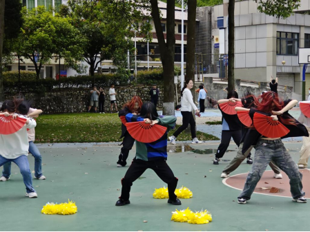 扎实训练,精心设计。为确保能呈现出最佳效果,学院对训练时间及方式严格要求,认真准备,按照“先分组、后集体”的方式保证效率、提高整齐度,分“中心团+舞龙+打鼓+双截棍”四部分内容进行教学及练习,后期集中训练队形和配合变换。无论是变换多样的队形,还是整齐划一的动作,都凝聚了全体队员无数次的汗水和努力。