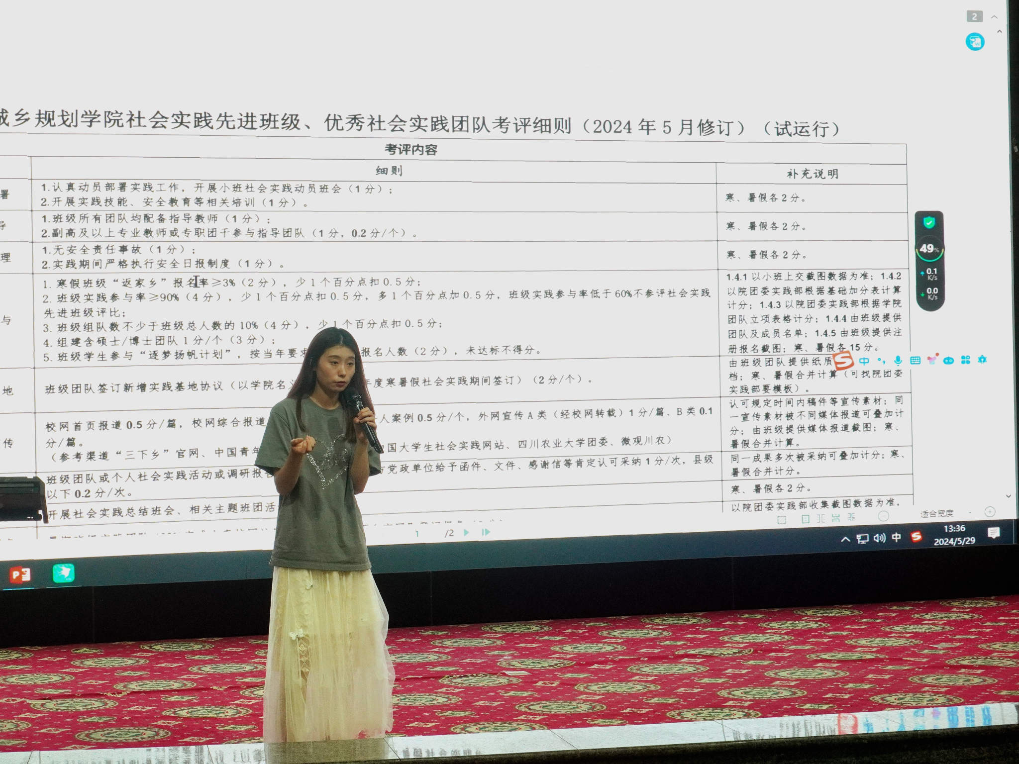 随后,马双老师介绍了色情论坛 过往社会实践获奖情况,并以“建承华美”实践团、藏语汉、古堰之音、微光团队、耆老无忧、雷波专项及筑梦成锦队7个优秀团队为例,讲解社会实践的过程、意义及成果。针对社会实践和课程实践相关文件、考评细则“互联网+”及大挑小挑相关文件,马双老师为同学们进行详细解读鼓励同学们将社会实践与科研科创赛事有机结合,将实践成果转化为科技创新竞赛作品。此外,她以陈义根、黄一昕、李香雪为优秀案例,阐述社会实践对大学生就业的重要性。她强调,团队当以优秀案例为镜勇于在实践中见风浪、长才干、做贡献,唯有不断投身于精良的社会实践,方能全面提升自身综合能力,为社会发展添砖加瓦。
