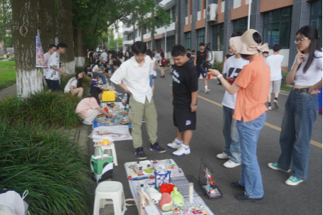 本科生毕业生、研究生参与,校区其他学院同学受到现场气氛感染,也积极加入活动中来,在大道摆摊交易二手物品。更有学院老师以故事易物的形式加入此次跳蚤市场活动中来,拉进师生之间的距离。