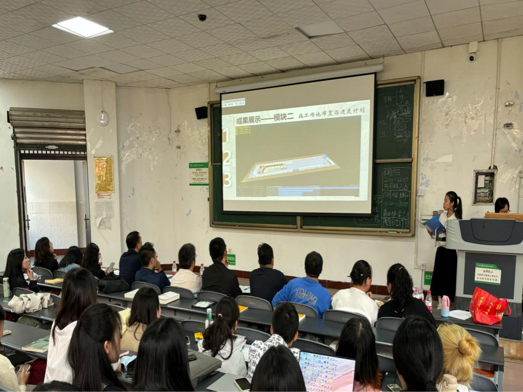 建设管理系系主任甘露、造价专业负责人李星苇及建管系李静、刘万琳、张露云、吕彦明、魏伟、刘飞、李琦、蒋位玲、袁婷等老师出席活动并担任此次比赛的评委。在李敏老师的主持下,比赛拉开了帷幕,通过初赛晋级的13个小组依次上台展示成果。有的小组以建筑项目为重点,通过精细的模型和生动的演示,展现BIM技术在建筑设计、施工和管理中的应用;有的则以方案优化报告为主,模拟展示项目进度与关键节点。在展示过程中,小组成员们不仅介绍了项目的实施方案和模型文件,还详细阐述了他们的BIM造价成本管控过程。他们的精彩表现赢得了现场观众的阵阵掌声,评委老师们也对他们的专业素养和创新能力给予了高度评价。