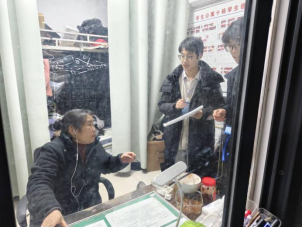图为小组成员与寝室管理员交流