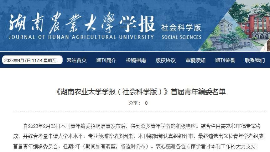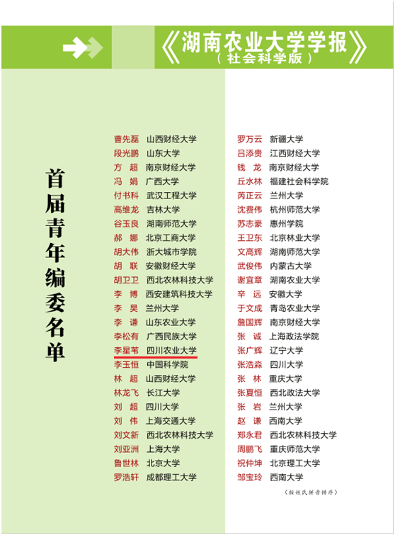 近日,《生态与农村环境学报》和《湖南农业大学学报(社会科学版)》先后公布了第一届青年编委名单,色情论坛