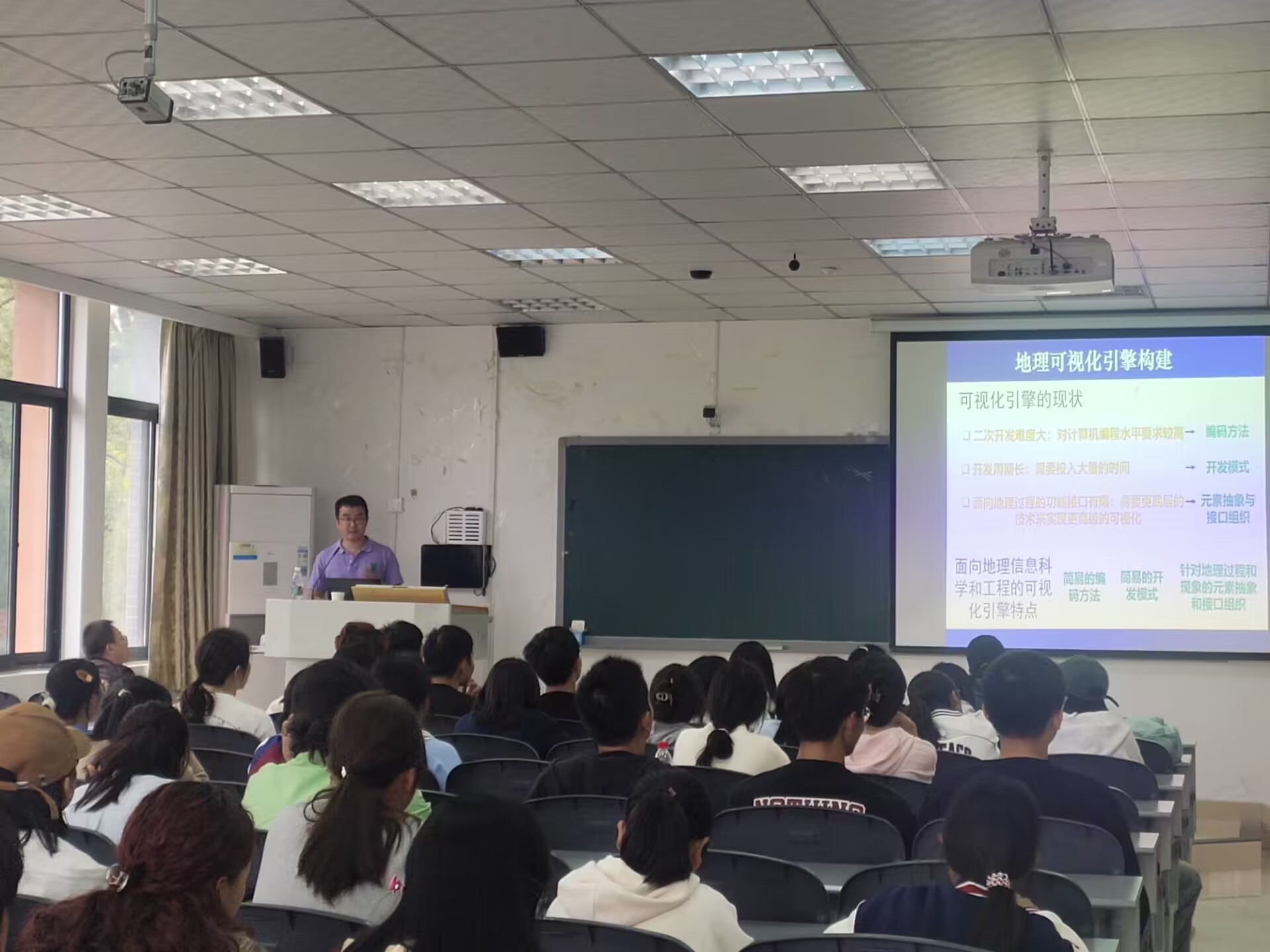 进行学术交流,并为学院师生作了题为“从地理可视化到数字孪生”的学术报告。学院本科生、研究生及教师代表共70余名师生参会,报告会由院长曹云忠主持。