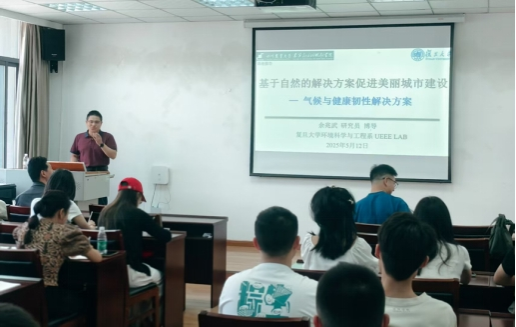 互动环节现场学术氛围浓郁,现场师生踊跃提问,余兆武教授悉心指导、耐心解答,围绕 NbS 在实际应用中的技术难点、政策支持、公众参与等方面同与会者展开深入交流,余教授指出,随城市化水平不断提升,“城市病”或成为社会一大痛点,鼓励学院师生关注并参与相关领域研究实践,为城市可持续发展贡献力量,为城市环境保护添砖加瓦。