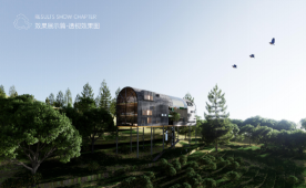 树荫深深,浮云悬横,与日月和光,携山峦同尘。设计以有机建筑为核心思想,根植于对生活、自然形态的情感,以乡土建筑为基而又破土于传统建筑形态,以光下脐橙树影为概念,使用弧形片墙作为构成元素,曲线的残缺与圆满让建筑更具有呼吸感与生命力,大成若缺,和光同尘,使其活在山川中。新旧融合,打造现代化和美乡村。